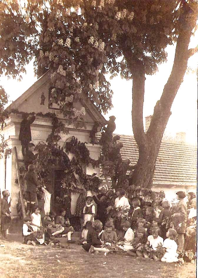 Jest na Woli Duchackiej jedno symboliczne miejsce, które się mija jadąc ulicą Malborską, niegdyś Piłsudskiego czy Główną. Maleńki pagórek z największą w okolicy kapliczką domkową z obrazem Matki Boskiej Częstochowskiej. Wypadałoby zacytować wieszcza – wierszem które dawniej dzieci znały na pamięć: „Pójdźcie, o dziatki, pójdźcie wszystkie razem / Za miasto, pod słup, na wzgórek; / Tam przed cudownym klęknijcie obrazem, / Pobożnie zmówcie paciórek.” To dokładnie widać na fotografii z 1931 r. – chyba wszystkie wolskie dzieci przyszły ozdobić kapliczkę. Kościół parafialny był daleko – św. Józefa w Podgórzu. Okazała kapliczka konsekrowana w 1882 r., postawiona z inicjatywy wójta Piotra Persa na jego działce, jako „centrum religijne” służyła całej społeczności przez wiele lat i zbliżała ludzi do siebie.