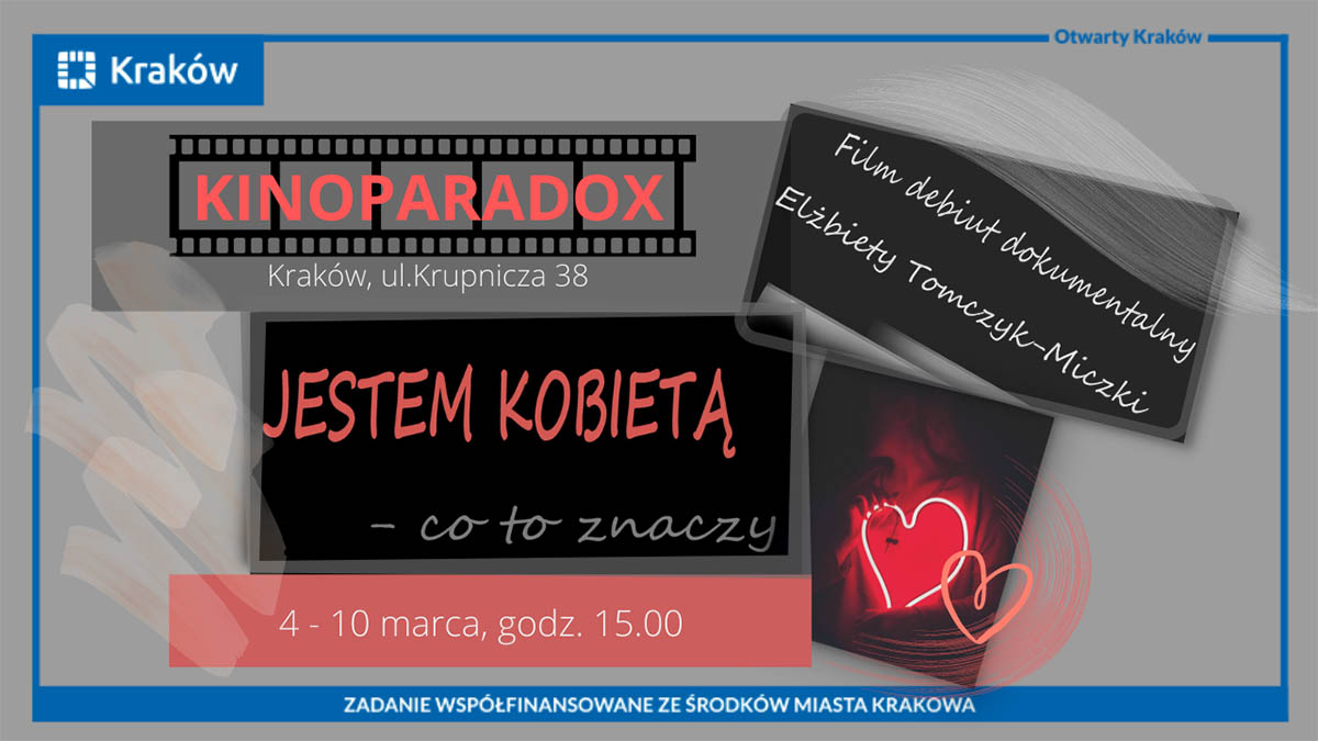Seanse filmu „Jestem kobietą – co to znaczy?” odbędą się w Kinie Paradox codziennie od 4 do 10 marca 2022 o godz. 15.00 (za wyjątkiem 5 marca: seans tylko za zaproszeniami). Kino Paradox, Kraków, ul. Krupnicza 38.