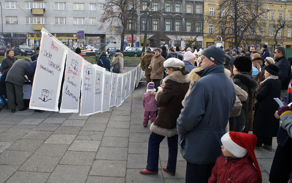 W grudniu 2005 roku Stowarzyszenie PODGORZE.PL wyszło na ulicę, a właściwie na Rynek Podgórski. Zorganizowaliśmy Manifest dobrych pomysłów na fort. Zamanifestowaliśmy oburzenie i absolutny sprzeciw wobec forsowanego pomysłu nadbudowy i podziemnych parkingów w skałach Krzemionek.