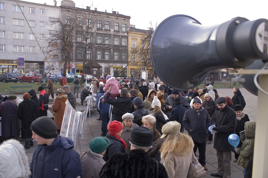 W zamian, zaprosiliśmy mieszkańców do wyboru jednej z kilkudziesięciu przedstawionych na planszach możliwych funkcji albo do zaproponowania własnych pomysłów. Mieszkańcy przyklejali kolorowe karteczki, głosując w ten sposób na ich zdaniem najlepszy albo dopisywali kolejne. Na manifeście/proteście zjawiło się blisko 500 osób. Wtedy pisaliśmy „wszystkie plansze trafią do prezydenckich rąk – jako dowód na to, że społeczność Podgórza chce decydować o swojej części świata, że potrafi to robić i nie tylko protestuje – ale proponuje inne rozwiązania. Teraz wystarczy wybrać najlepszy, poddać go gruntownej analizie, ocenić szanse realizacji, ogłosić konkurs na najlepszy projekt, zrealizować i uczestniczyć w radości i zadowoleniu wszystkich.”