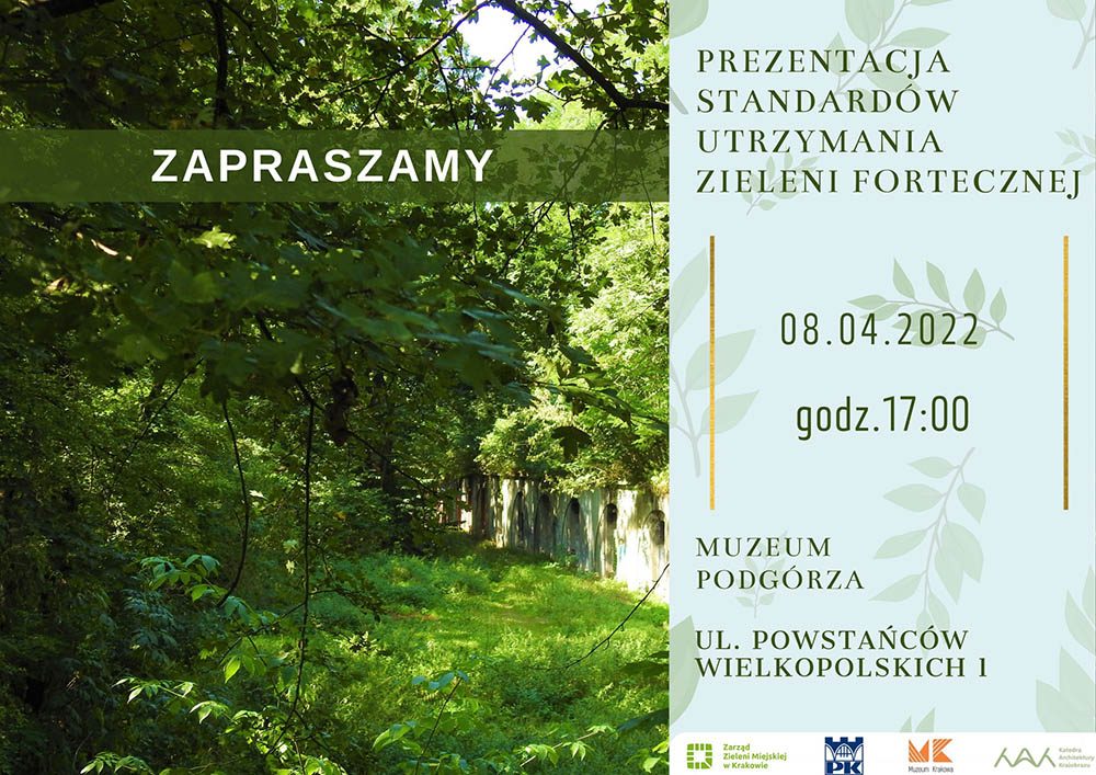 Zarząd Zieleni Miejskiej w Krakowie, Katedra Architektury Krajobrazu na Wydziale Architektury Politechniki Krakowskiej oraz Muzeum Podgórza zapraszają na prezentację standardów utrzymania zieleni fortecznej.