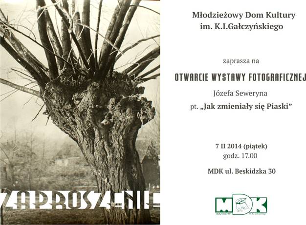 7 lutego (piątek), godz. 17.00 – wernisaż wystawy fotograficznej Józefa Seweryna Jak zmieniały się Piaski?, MDK im. K. I. Gałczyńskiego, ul. Beskidzka 30