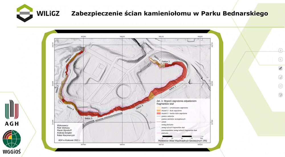 Podczas spotkania nt. zabezpieczenia ścian kamieniołomu w Parku im. Wojciecha Bednarskiego prof. Marek Cała przedstawił warianty opracowane przez specjalistów z Akademii Górniczo-Hutniczej.