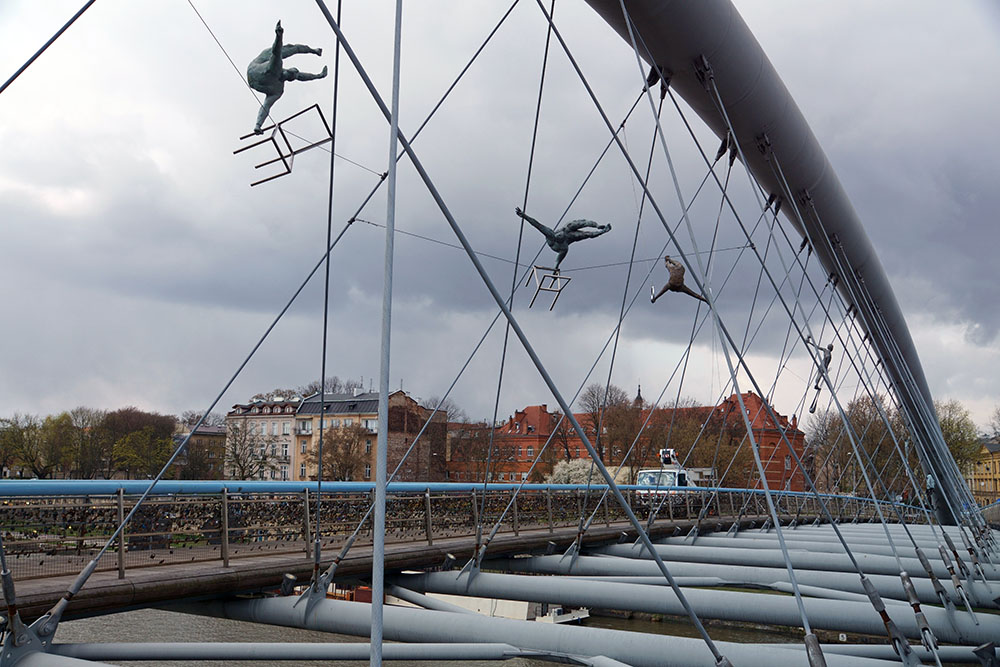 Przypomnijmy, że od września 2016 roku na kładce o. Bernatka prezentowana była wystawa rzeźb balansujących Jerzego Kędziory. Początkowo była planowana tylko na kilka miesięcy. Jednak rzeźby tak się spodobały, że zostały na dłużej. Do października 2020 roku, kiedy to wszystkie zostały zdemontowane. Po trzech tygodniach, odczyszczone i zakonserwowane trzy rzeźby zakupione przez miasto ponownie zawisły na kładce. W 2021 roku powróciły kolejne trzy rzeźby, a teraz ostatnie trzy.