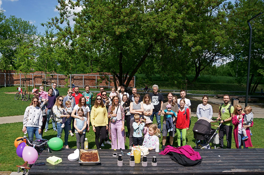 Tak piękną pogodę można było sobie tylko wymarzyć. Zrelaksowani i cieszący się słońcem zabłocianie i goście, twórcy i pomysłodawcy parku, realizatorzy cieszyli się dziś wspólnie pierwszą rocznica istnienia tej niezwykłej zielonej przestrzeni, powstałej na wniosek i dzięki staraniom podgórzan. Odśpiewano sto lat a najmłodsi zaangażowani niezwykle energicznie gasili świeczki tortu. Było wegańskie brownie z buraczkiem, lemoniada, życzenia długich i zielonych 100 lat i obietnica Zarządu Zieleni Miejskiej powiększenia już istniejącego placu zabaw w nowej dołączonej części. Park jak to roczniak rośnie 😉 i jak ktoś podczas świętowania stwierdził wygląda tak jakby tu był od zawsze ;-).