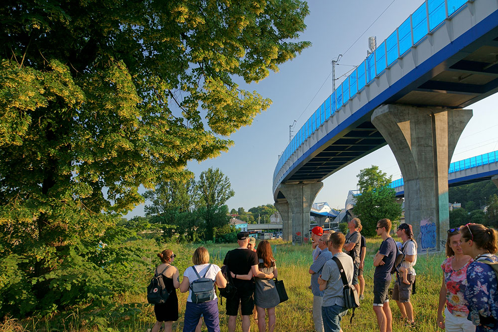 Przez ponad dwie godziny dr Piotr Klepacki próbował odpowiedzieć na pytanie: co rośnie pod łącznicą Zabłocie-Podgórze? A odpowiedz na to pytanie nie jest wcale łatwa, bo bogactwo roślinnego świata zaskoczyło wszystkich uczestników naszego spaceru, a nawet samego przewodnika!