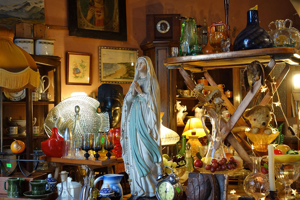 Przedmioty w Starym Kufrze są wyjątkowe – wszystkie! Bo wszystkie miały już jakieś pierwsze życie – czasem przed wojną, czasem 50 lat temu, czasem jeszcze w XIX wieku. Czasem to pierwsze życie toczyło się w chłopskiej chacie gdzieś na Kresach, potem drugie – na powojennym Dolnym Śląsku, a u nas czekają na kolejne narodziny. Czasem waza, w której podawano niegdyś na stół zupę – teraz pełni rolę wazonu na kwiaty. Czasem niecka, w której wyrabiano ciasto na chleb – staje się kapliczką…. A stare okienko ze szprosami zostaje ramą lustra. Stare rzeczy zwykle pięknie się starzeją, niedoskonałości dodają im uroku – nie ma dwóch takich samych wiekowych przedmiotów – i to jest wyjątkowe.