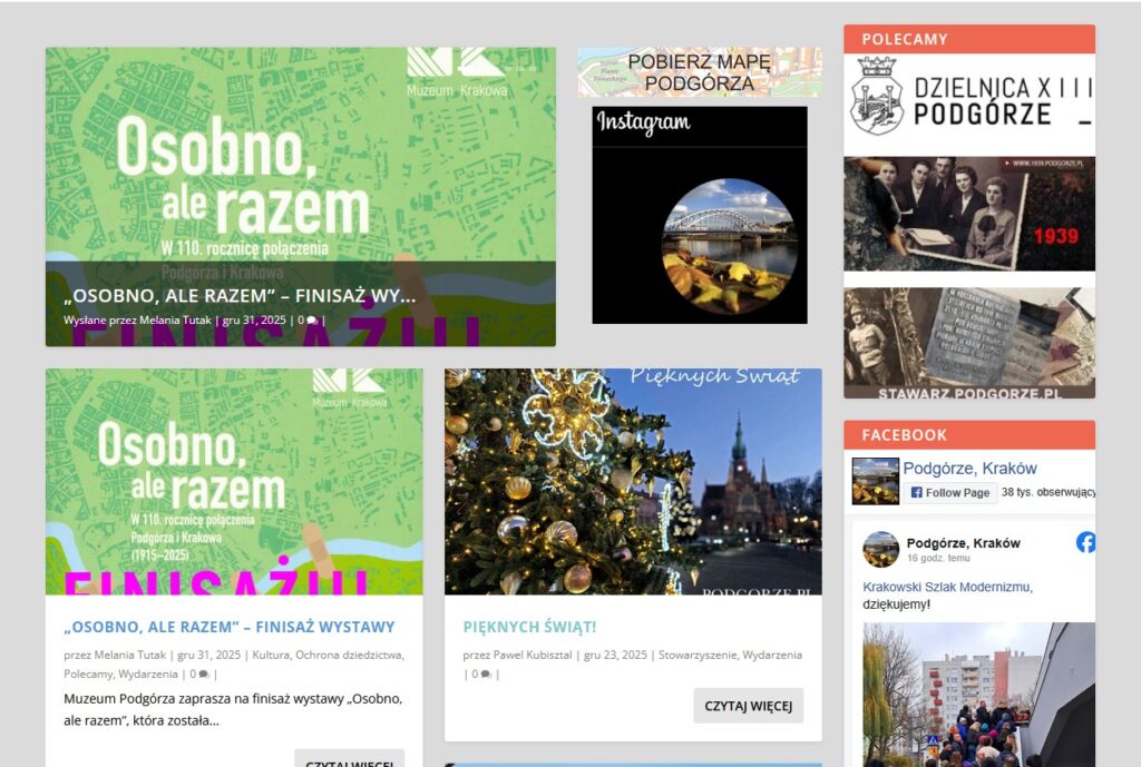 Z wpisów, które pojawiły się na stronie w 2025 roku, podobnie jak w poprzednich latach najchętniej czytany był program kolejnej edycji Podgórskich Dni Otwartych Drzwi. Następnie wpisy dotyczące wydarzeń podczas Świątecznych Targów Rzeczy Wyjątkowych.