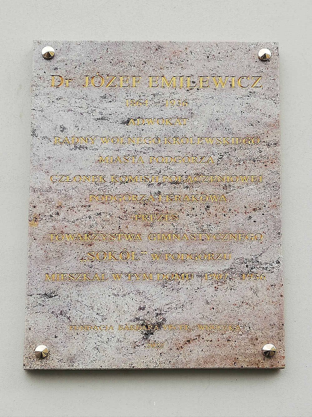 Tablica została wmurowana z inicjatywy wnuczki dr Józefa Emilewicza – Barbary Vecer, z pomocą arch. Jarosława Żółciaka.