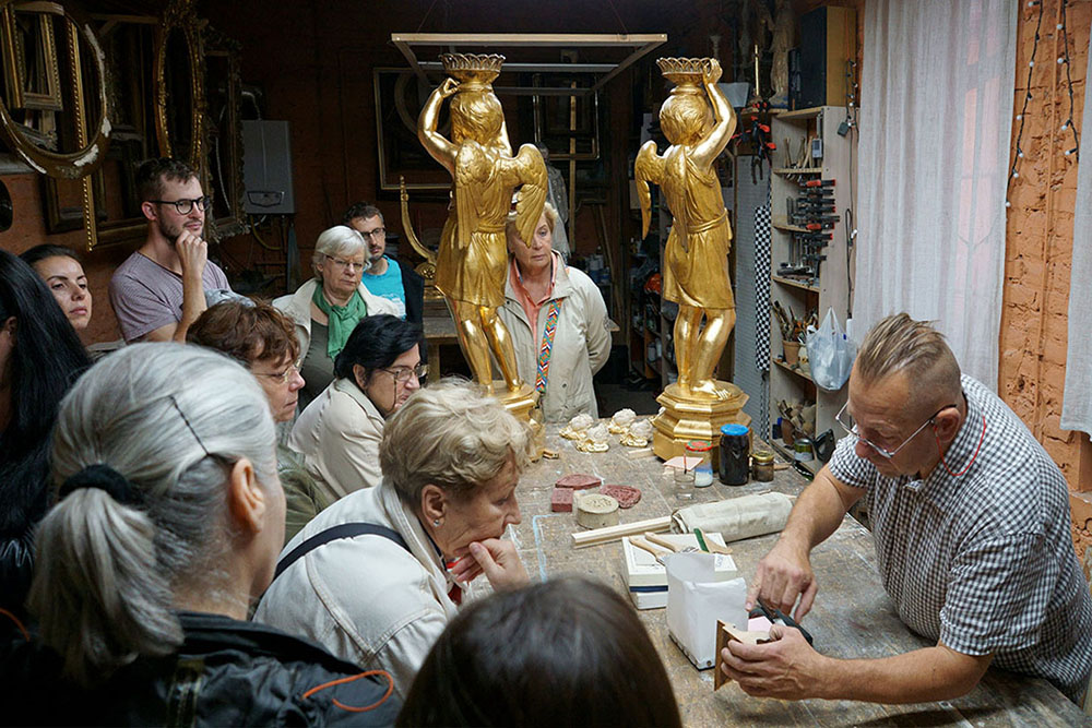 Pracownia Pozłotnicza „Ossolin Art” przy ul. Józefińska 15 (godz. 10.30). To miejsce, o którym śmiało można powiedzieć „kultowe”. Słynna pracownia pozłotnicza „Ossolin art.” Jej właściciel w niezrównany sposób opowiada o swoim rzemiośle, zabierając nas w świat fruwających płatków złota. Tu naprawia się anielskie skrzydła i leczy stare okaleczone czasem ramy. Troska i maestria, pasja, wieloletnie doświadczenie i niepowtarzalna atmosfera tego miejsca stworzyły jedną z najlepszych podgórskich pracowni rzemieślniczych. Kto nie był, niech zaraz naprawia ten błąd!