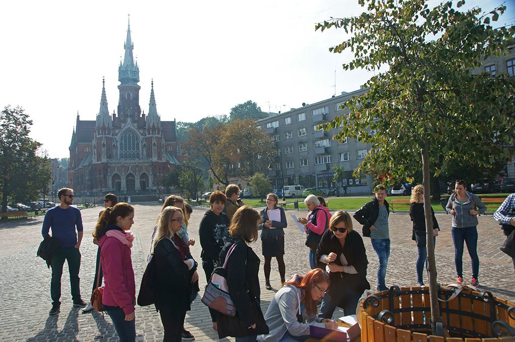 Dla początkujących – „Zrozumieć Polaka” – Survival Polish (nie tylko) w Podgórzu. Nazwy miejsc (co to warzywniak, apteka, poczta, targ, przystanek, plac itp.) / pytanie o drogę (np. jak dojść do Fabryki Schindlera). 60 minut warsztaty w szkole, 30 minut – praktyka na spacerze w okolicy