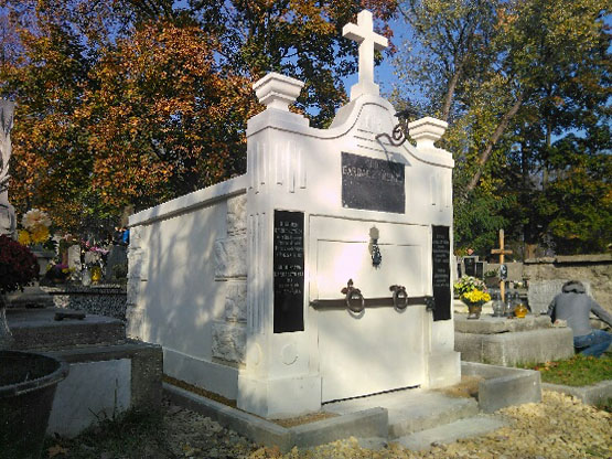 Praca nad jego renowacją była długa i niezwykle pracochłonna. Konserwator – Mariusz Wrona REPARO Konserwacja Zabytków, skonsolidował popękane i niestabilne architektoniczne elementy, szczególnie części fasadowej, które grodziły zawaleniem grobowca oraz wykonał nowe odwodnienie i izolację, niwelując i zabezpieczając teren wokół. Dodatkowo odczyścił grób z nawarstwień brudu, mchu, zacierek cementowych i zamalowań, nanosząc nowy tynk, a także zrekonstruował tablice inskrypcyjne i poddał konserwacji zachowawczej stalowe elementy. Trwają jeszcze ostatnie, drobne poprawki, ale ku naszej nieskrywanej radości już dziś zapraszamy do zobaczenia kolejnego podgórskiego grobowca, który odzyskał swoje dawne piękno, a przede wszystkim pamięć o ludziach, którzy tworzyli historię Podgórza. Mamy nadzieję, że tegoroczna kwesta pozwoli nam w przyszłym roku rozpocząć kolejne prace na Podgórskim Cmentarzu. Zapraszamy!